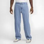 lightweight denim yet durable pants withstand a pounding on the pavement. The wide leg design features a consistent width from thigh to ankle for a retro look.
