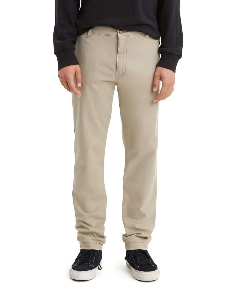 Mens Khaki Brown Standard Taper Fit Chino Pants Jeans