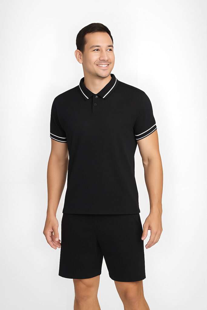slim fit classic look and contrasting knit collar polo